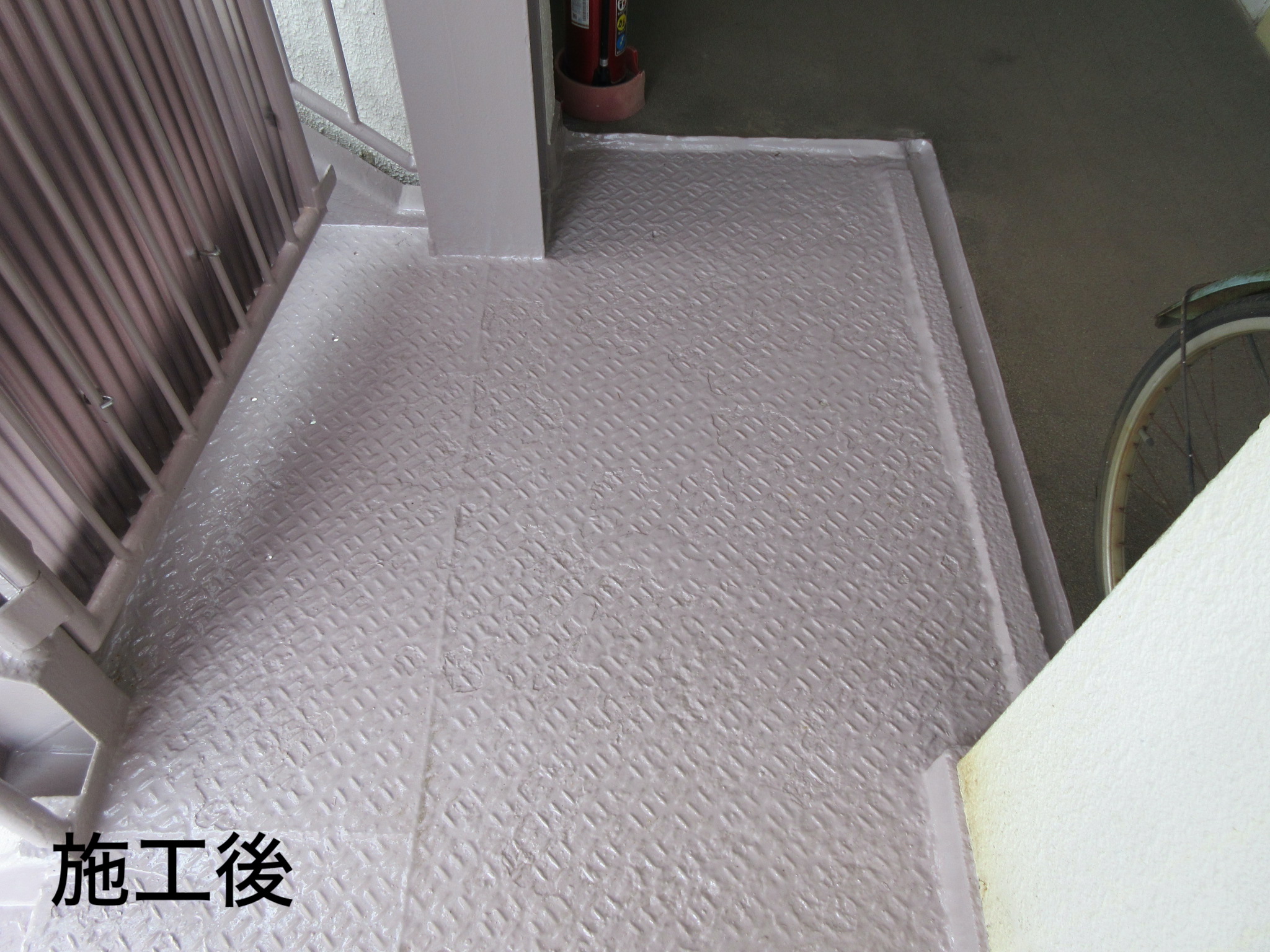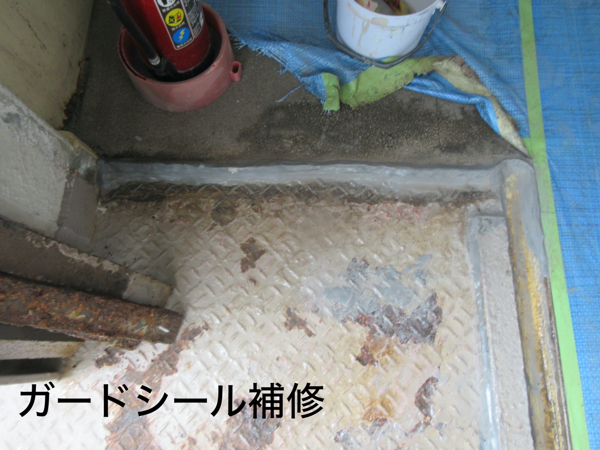 施工後は、踊り場の水たまりも解消され、腐食個所もガードシールで補強し、
